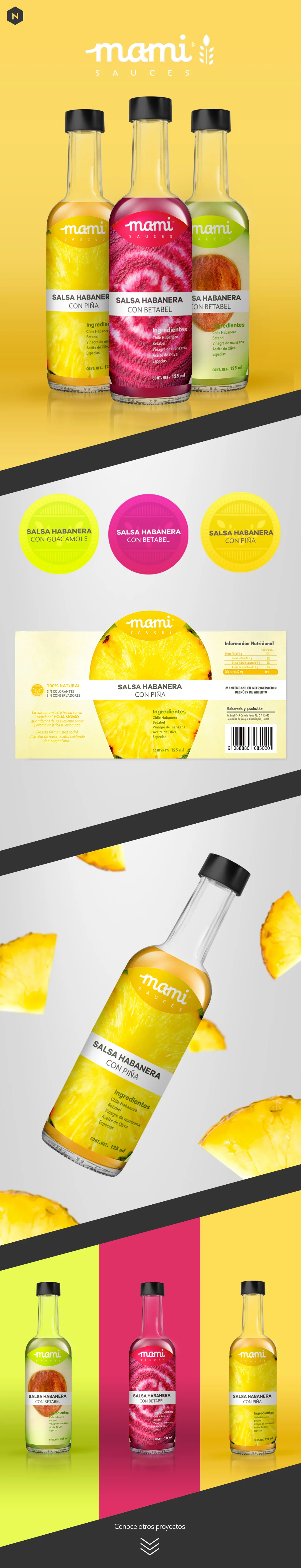 Nuestra propuesta de diseño consiste en realzar cada uno de los ingredientes que dan sabor y acompañan al chile habanero en cada presentación: piña, aguacate y betabel, como destacar su frescura y eliminar la percepción que tiene catalogado el chile habanero como irritante. Mami® Sauces invita a probar el delicioso contraste de sabores en cada bocado.
